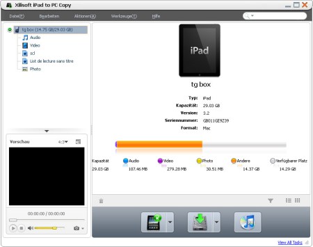 Xilisoft iPad to PC Copy kann nicht nur einfacher als iTunes Videos, Musik und Fotos vom Computer auf iPad übertragen, sondern auch iPad Videos und Musik auf Ihrem Computer und auf iTunes-Mediathek für Backup kopieren.