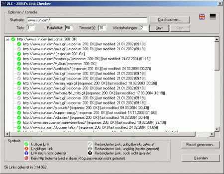 ZLC überprüft verschiedene Typen von verlinkten Dateien (HTML Files, Bilder, Applets, Stylesheets, ...).