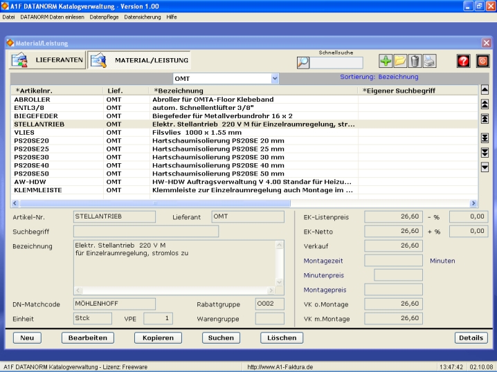 A1F DATANORM Katalogverwaltung - Screenshot