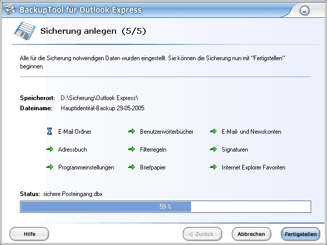 BackupTool für Outlook Express - Screenshot