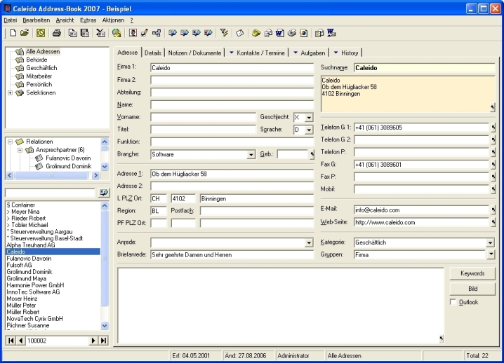 Caleido Address-Book 2007 - Screenshot