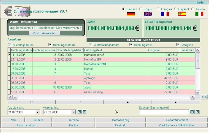 Dr. Hennig Kontomanager - Screenshot
