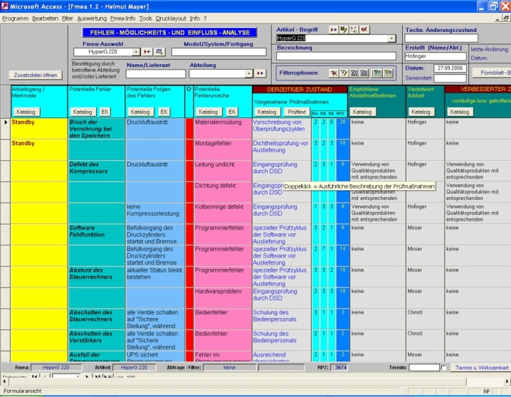 Fehlermöglichkeiten- und Einflußanalyse (FMEA) - Screenshot