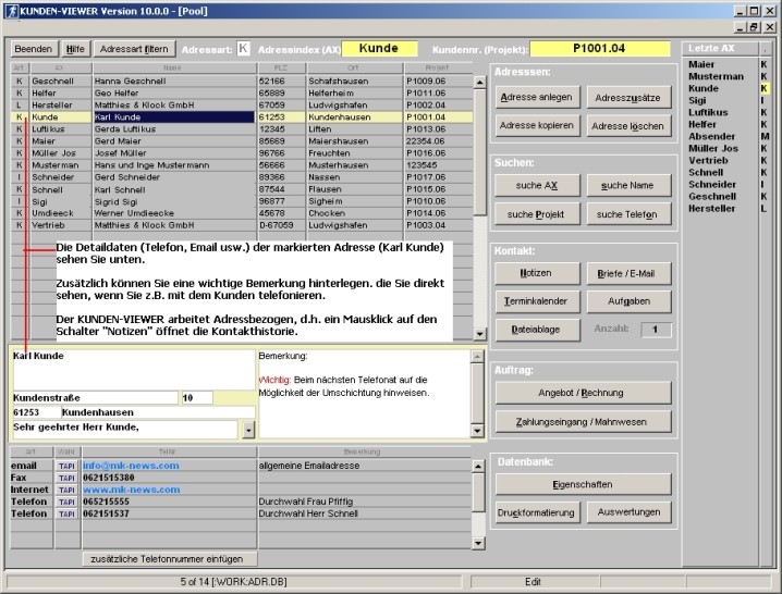 Kunden-Viewer - Screenshot