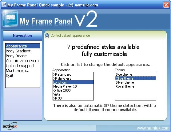 My Frame Panel ActiveX - Screenshot