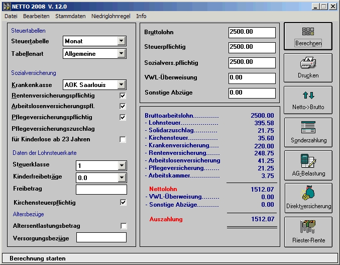 NETTO 2013 Nettolohnrechner mit Riesterrente und BAV - Screenshot
