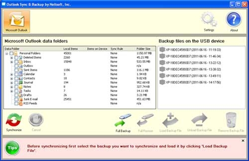 Outlook Sync & Backup - Screenshot