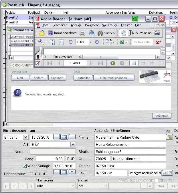 Postbuch für Windows - Screenshot