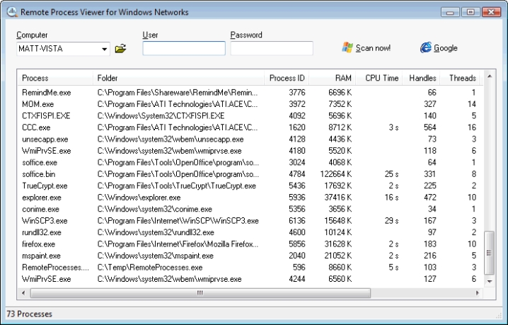 Remote Process Viewer - Screenshot