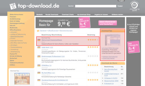 Buchen Sie einen Download-Tipp für 2 Wochen auf der Startseite von Top-Download.de (40,- Euro brutto) oder einen Rotationstipp für 1 Monat (60,- Euro), erhalten Sie zusätzlich einen Download-Tipp in einer beliebigen Kategorie (nach Verfügbarkeit) für 1 Monat kostenlos dazu.